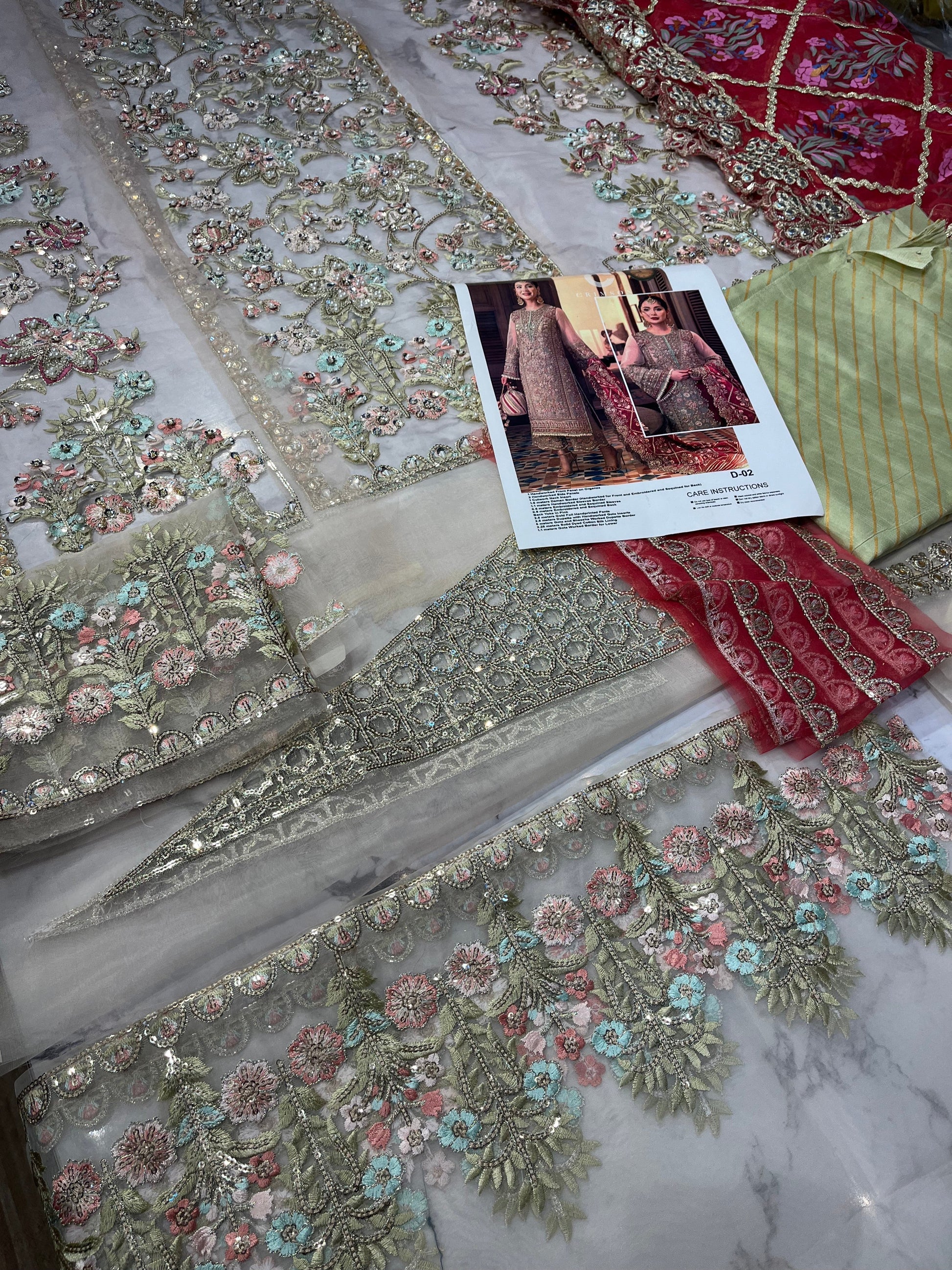 Nooré takes pride in its handcrafted party wear. Due to the delicate nature of our items, slight variations may occur (5-10%) in design, color, or embellishments. We recommend dry cleaning for all garments.