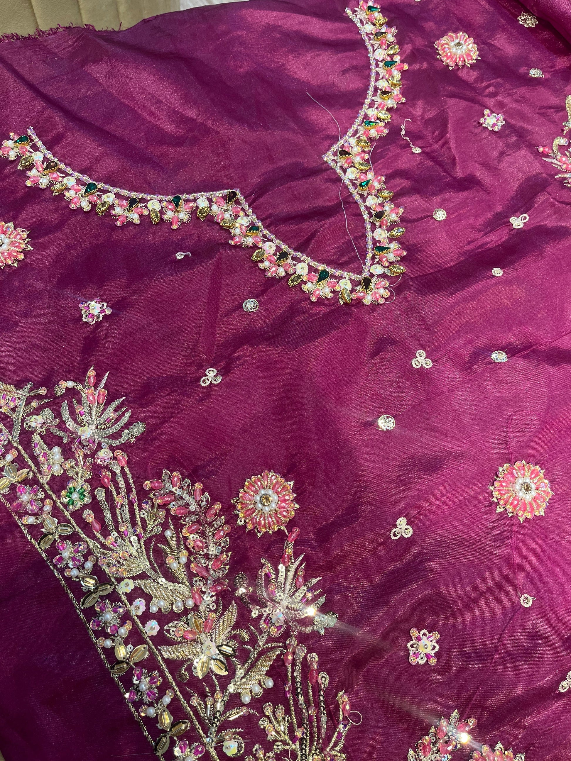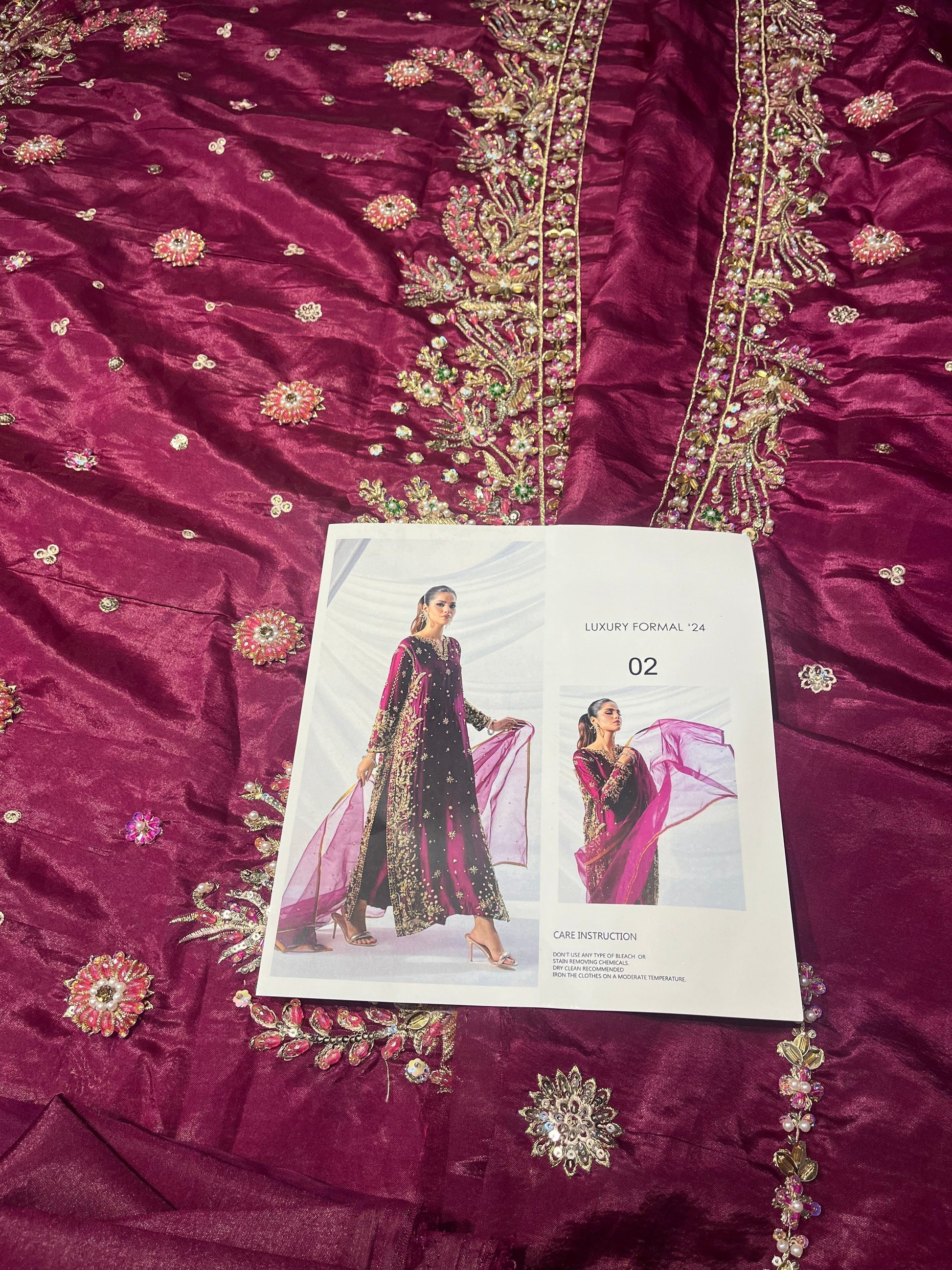 Nooré takes pride in its handcrafted party wear. Due to the delicate nature of our items, slight variations may occur (5-10%) in design, color, or embellishments. We recommend dry cleaning for all garments.