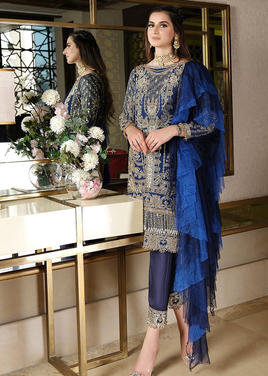 Traditional embroideries are elevated by regal hues, featuring stunning embellishments that exude whimsical grace and opulence.