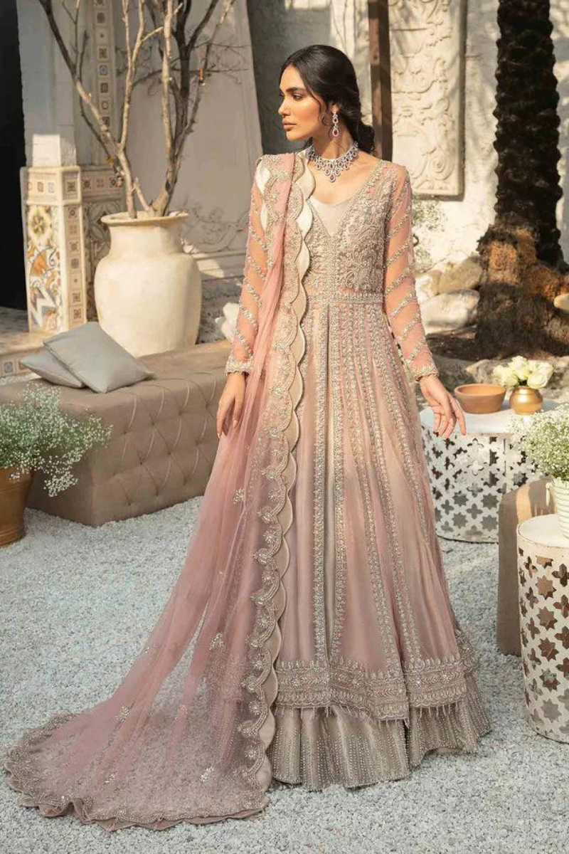 Work Technique: Embellished with dramatic merge of rose Gold and silver naqshi dabka are Handcrafted